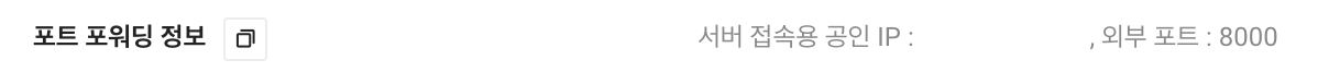 - 그리고 접속할 포트를 외부 포트로 넣어주고 추가 > 적용을 하면 적용이 된다 (난 위에서 방화벽 열어줬던 8000번으로 함)
