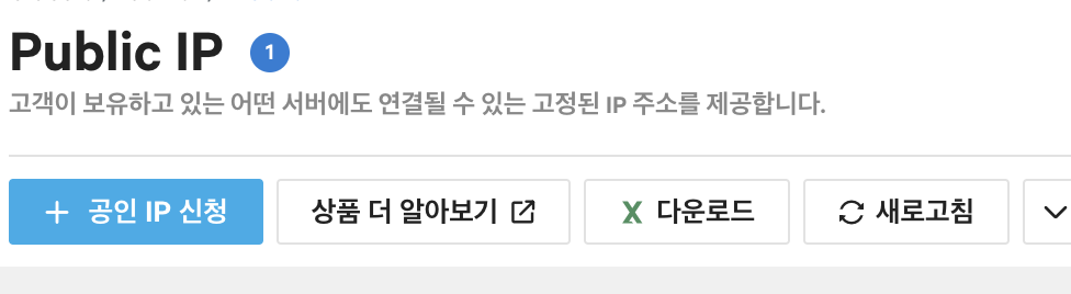 - 여기서 공인 IP 신청을 하고 적용할 서버를 눌러 주면 된다.