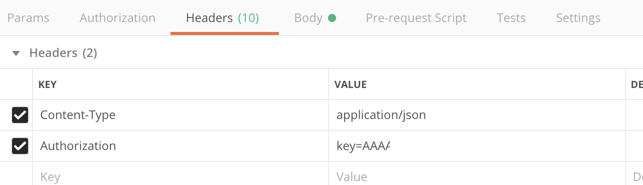 Conten-Type은 apllication/json, Authorization은 key=[클라우드 메시징의 서버 키]